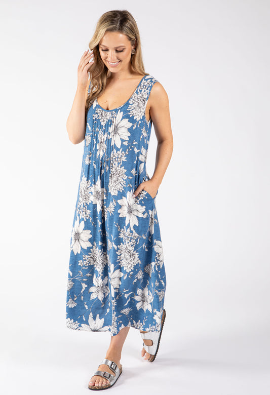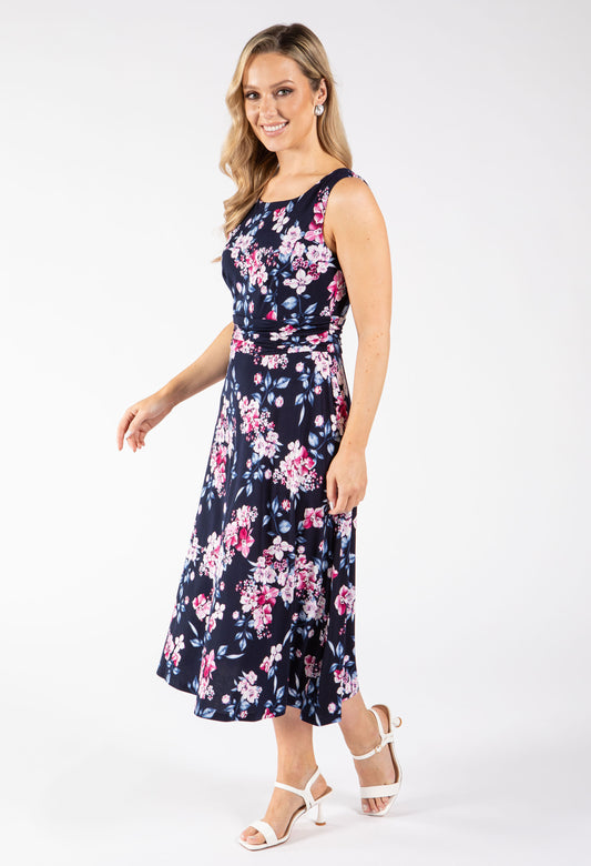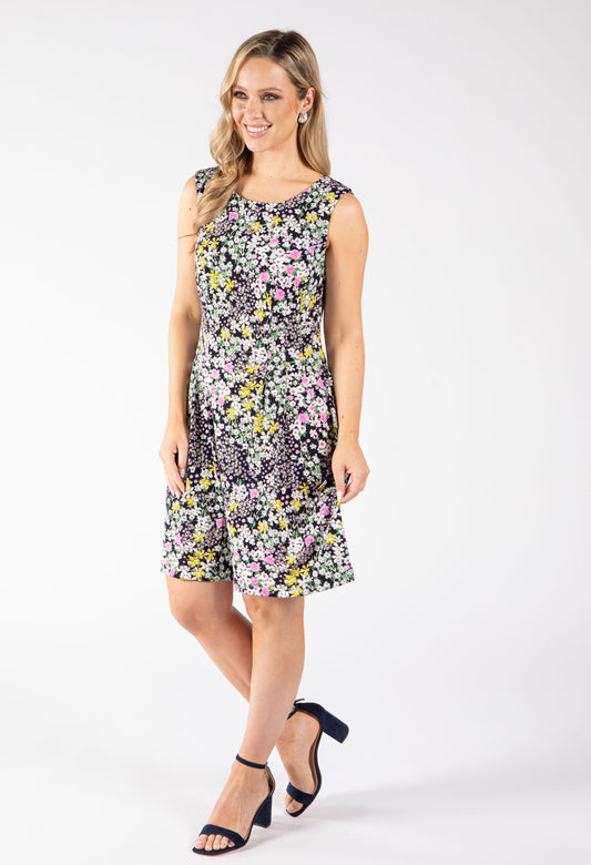 Floral Print Sleeveless Dress in Navy/Yell/Pink