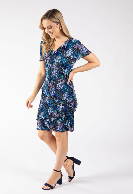Tempo Floral Print V-Neck Dress in Navy Mix