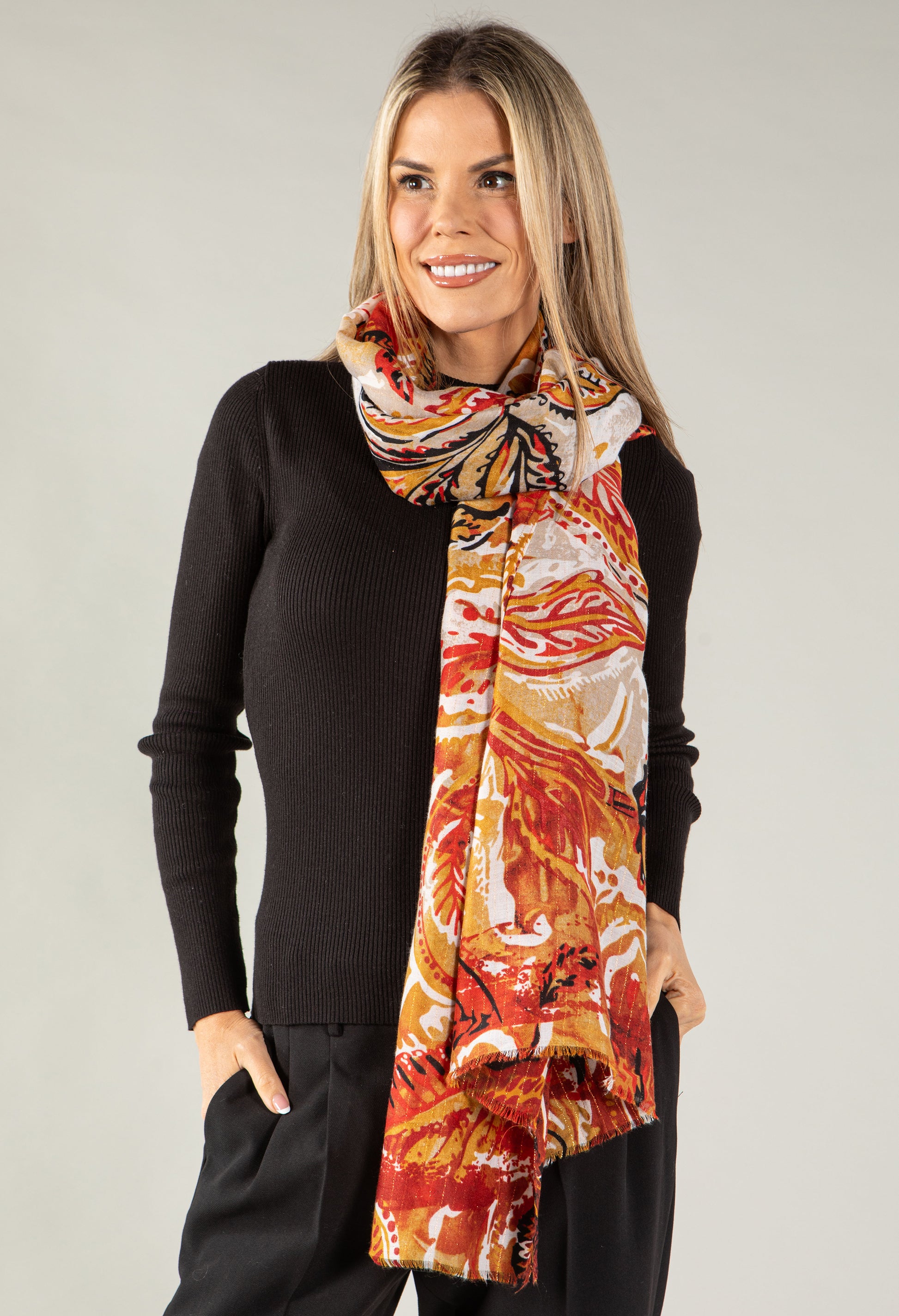 • How to wear: Drape a printed scarf over a neutral-toned coat or sweater for a chic, statement-making ensemble. The print adds a playful contrast to solid-colored outfits and can instantly refresh your wardrobe staples like black, beige, or navy. Opt for lightweight scarves for mild days, or choose thicker, woolen varieties for extra warmth. Whether tied around your neck, draped over your shoulders, or wrapped around your bag, a printed scarf is the perfect versatile accessory to complete any outfit.
