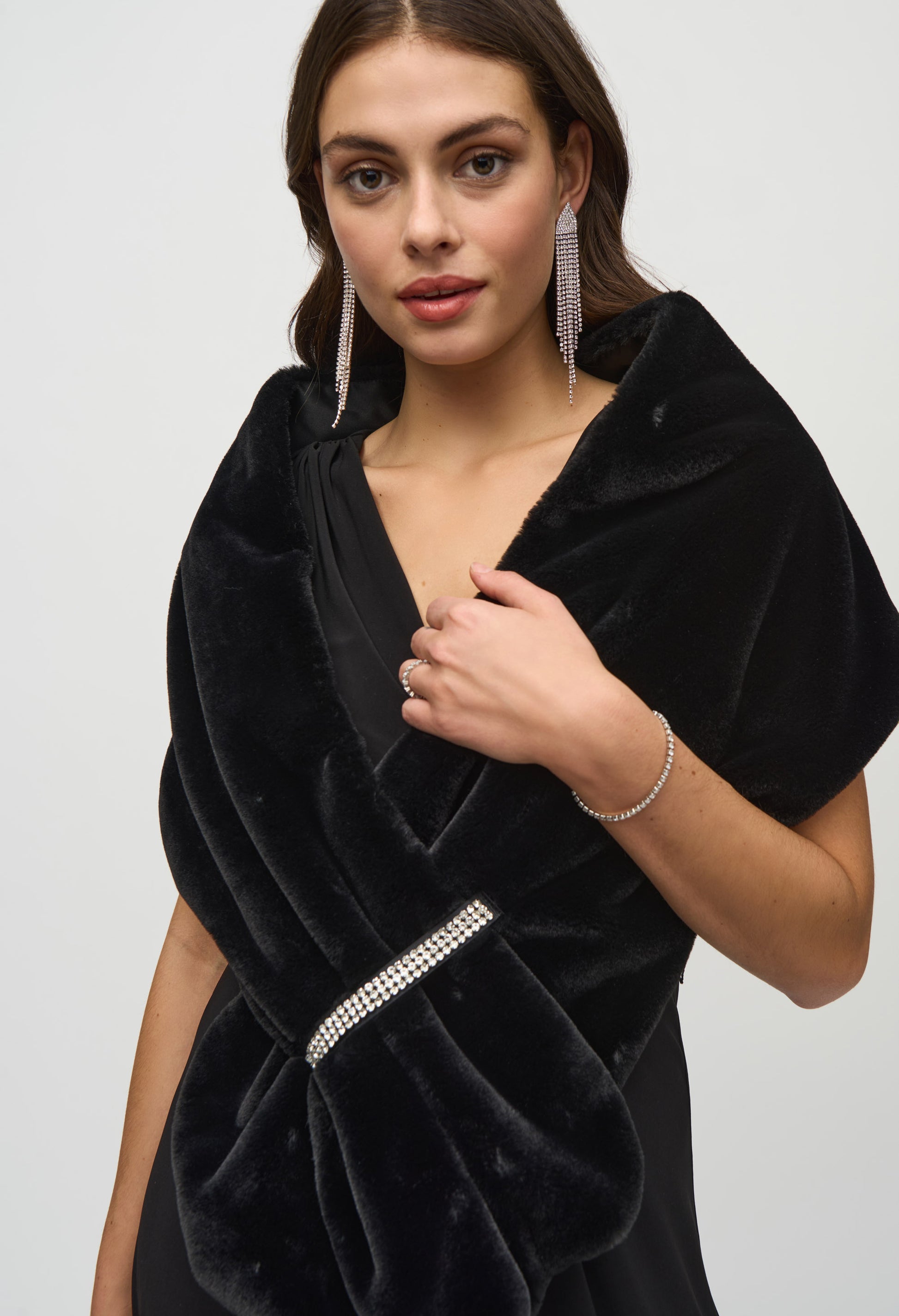 • How to wear: Faux fur coats or stoles make a bold statement and instantly elevate your evening gown or cocktail dress, adding a dose of Old Hollywood glamour. Opt for a faux fur piece in rich tones like black, ivory, or mink for a classic look. For a subtler approach, shimmering shawls or wraps are a perfect addition to drape over your shoulders during formal occasions. Choose metallic or beaded fabrics that catch the light and add a sophisticated sparkle to your outfit. Shawls in silver, gold, or champagne hues pair beautifully with a variety of dress colors. Complete your occasion wear look with statement earrings, a clutch, and classic pumps or heeled sandals.