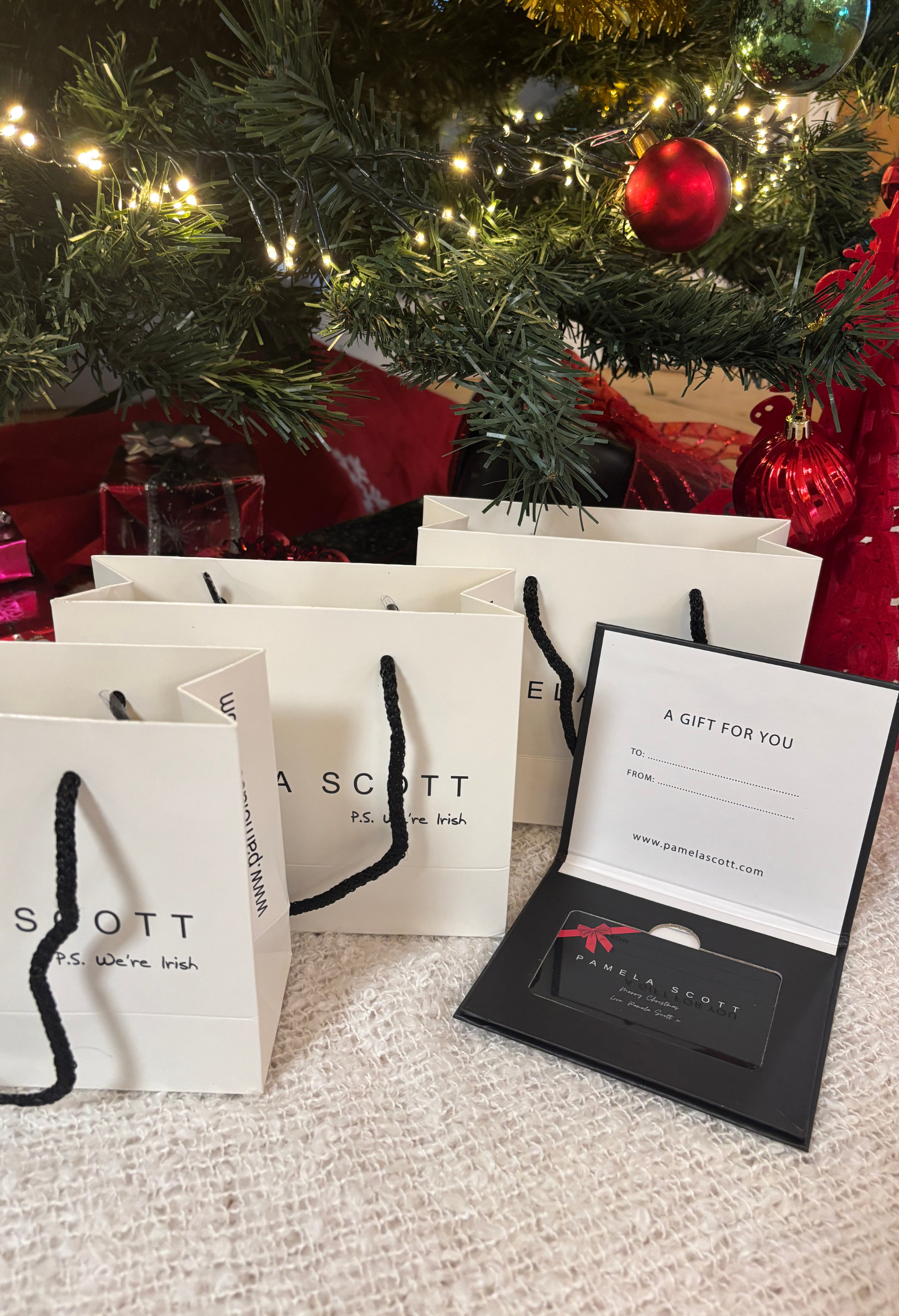 Not sure what to pick? Too many gifts to choose from? Why not give the gift of choice with a Pamela Scott gift card. This way, your loved one can choose exactly what they want, whether that’s a cosy winter accessory, a stylish new bag, or a wardrobe refresh for the New Year.