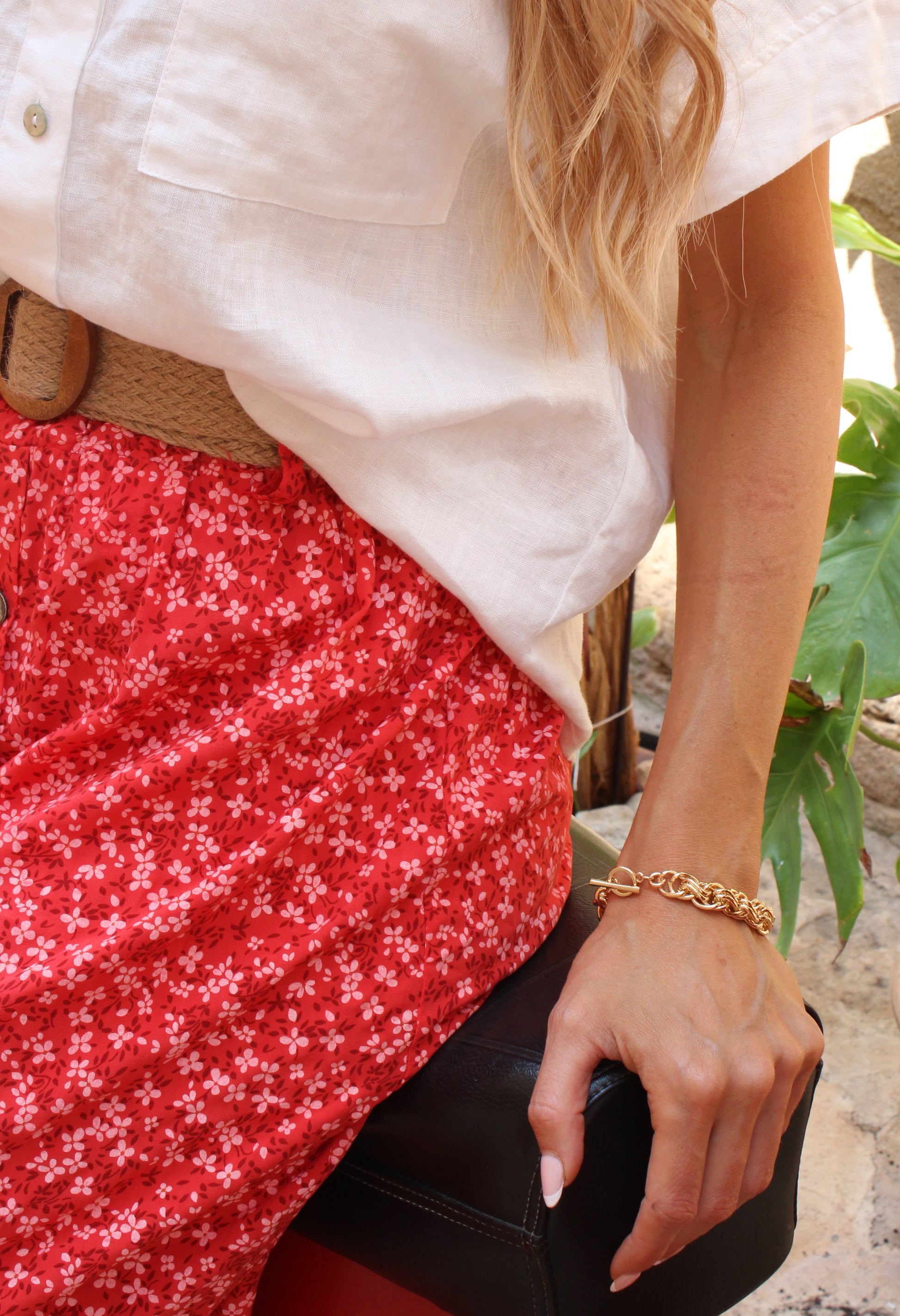 Available in elegant, neutral tones, and in printed pops of colour, this skirt transitions effortlessly from day to night, making it perfect for those summer evenings when you want to look put together without the fuss. Whether you’re exploring new cities or enjoying a relaxed day by the beach, the Emporium Midi Belted Skirt will be an essential wardrobe.