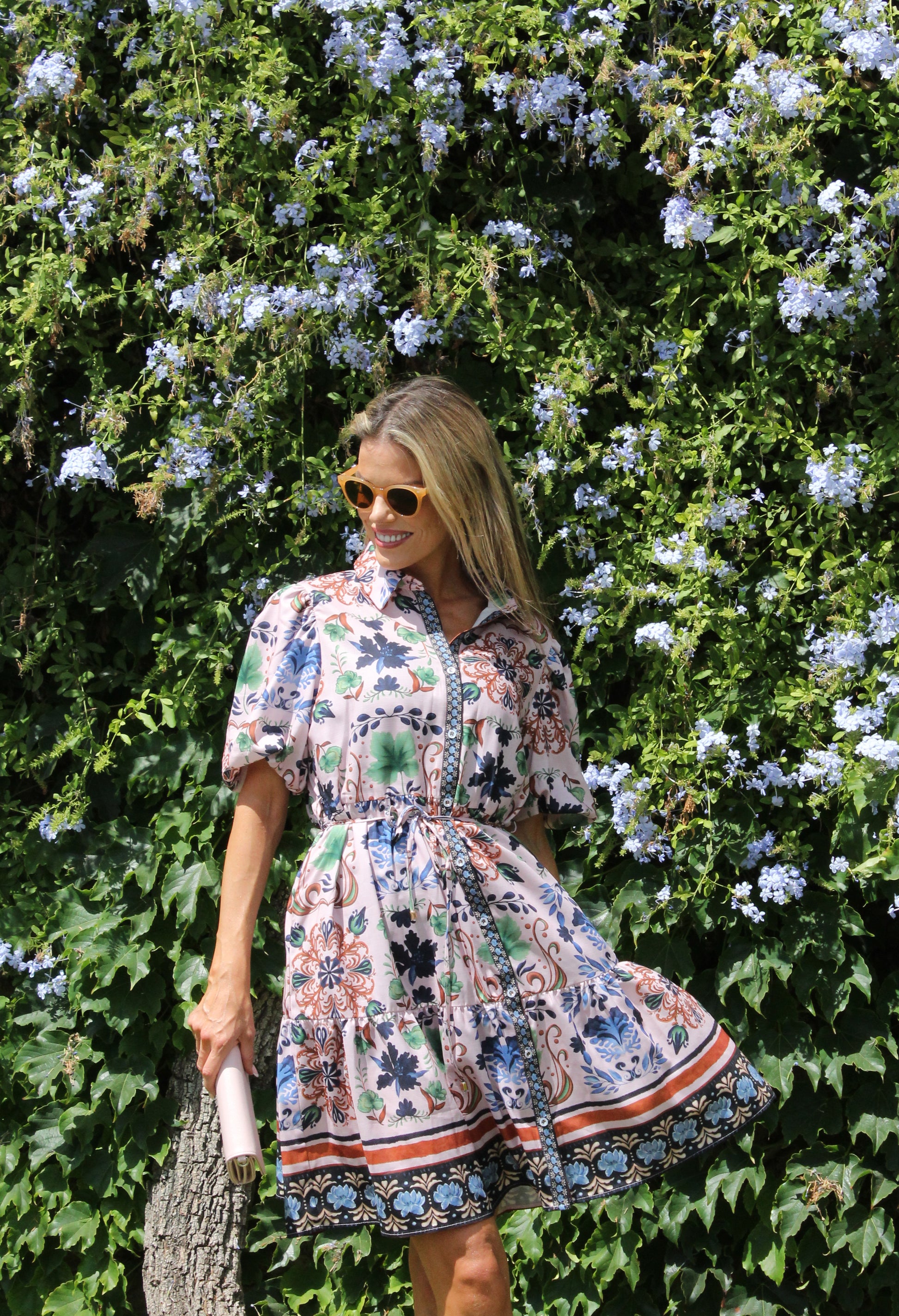 The button-through style of the dress adds a timeless, structured feel, while the lightweight fabric keeps you cool even on the hottest days. Whether you’re strolling along a seaside promenade, enjoying lunch in a charming town, or sipping cocktails at sunset, this dress effortlessly blends comfort and elegance. The playful print adds a fresh take on classic shirt dress styling. It’s versatile and can be dressed up or down, pair it with sandals and a wide-brimmed hat for a day of sightseeing or add heels and bold accessories for an evening out.