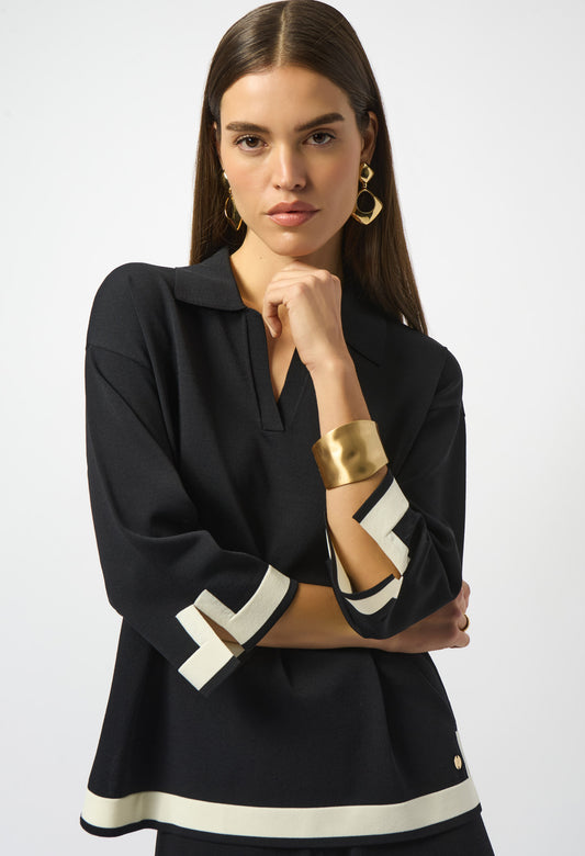 Chic Hip-length Blouse in Cream/Black