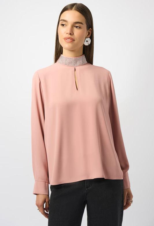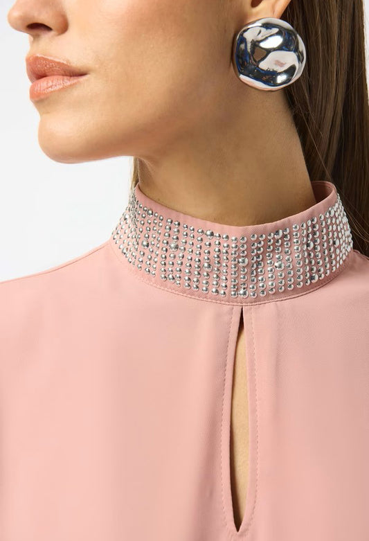 High Neck Embellished Blouse in Rose Pink