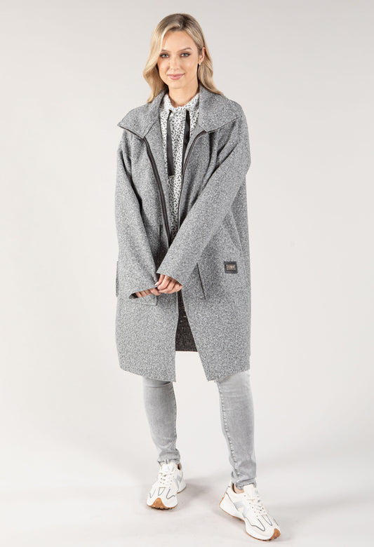 Soft Touch Hooded Zip Up Coatigan in Grey