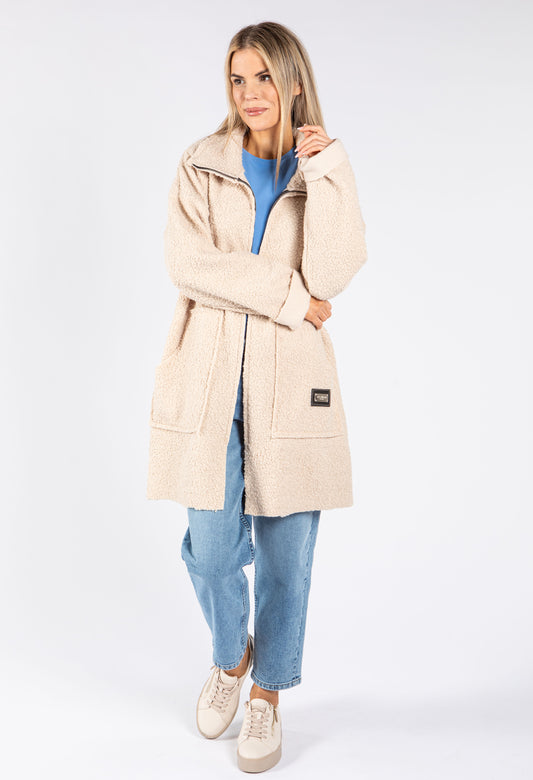 Soft Touch Hooded Zip Up Coatigan in Cream