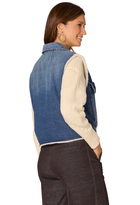 Sherpa Lined Vest with Oversized Pockets in Blue