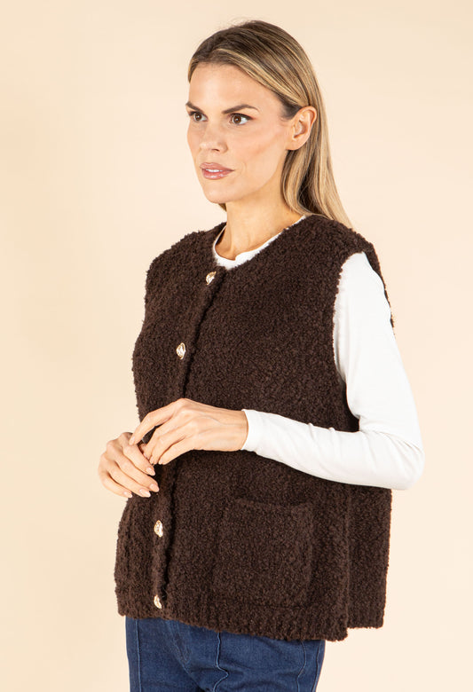 Boucle Wool-Alpaca Blend Waistcoat in Brown