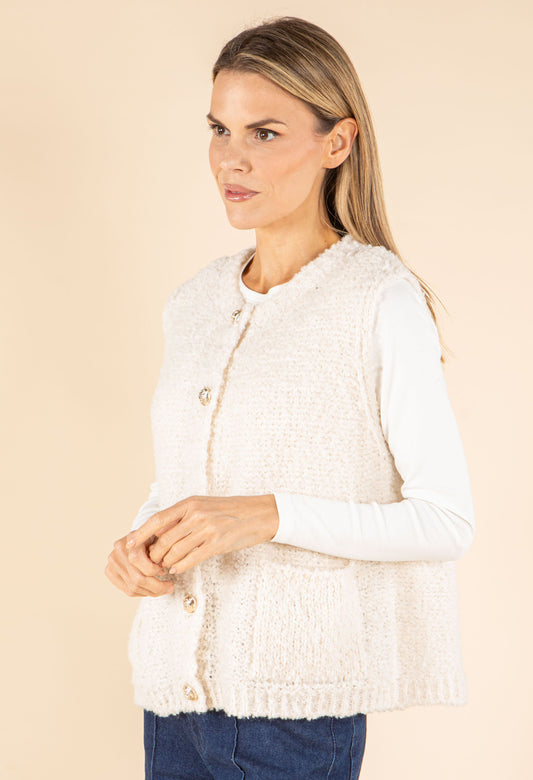 Boucle Wool-Alpaca Blend Waistcoat in Cream