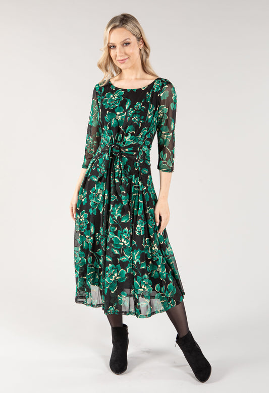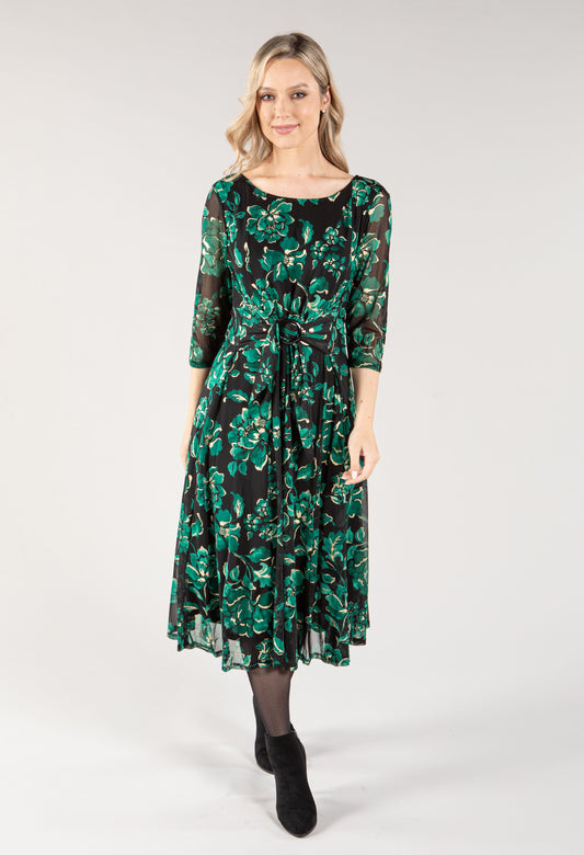 Floral Dress and Short Sleeve Shawl Two Piece in Navy