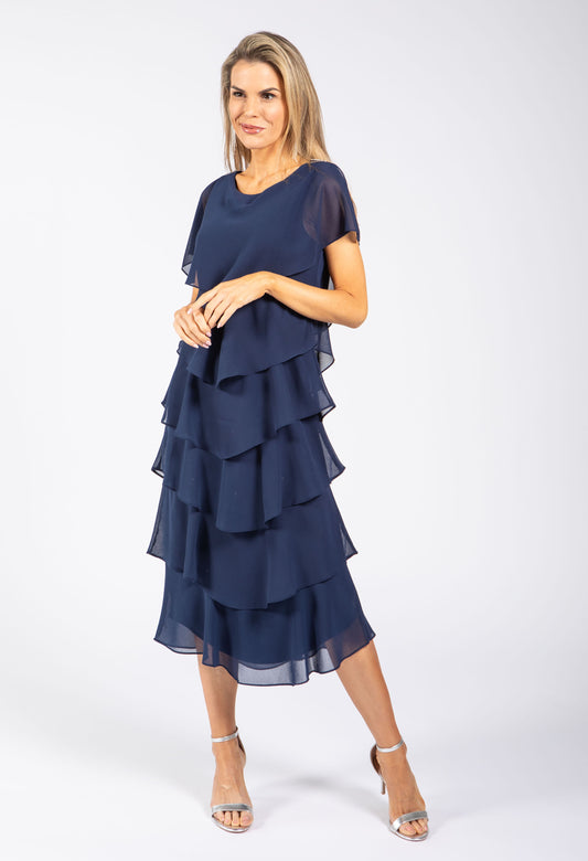 Georgette Chiffon Midi Dress in Navy