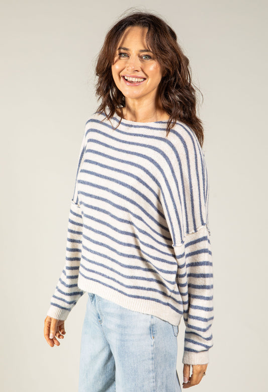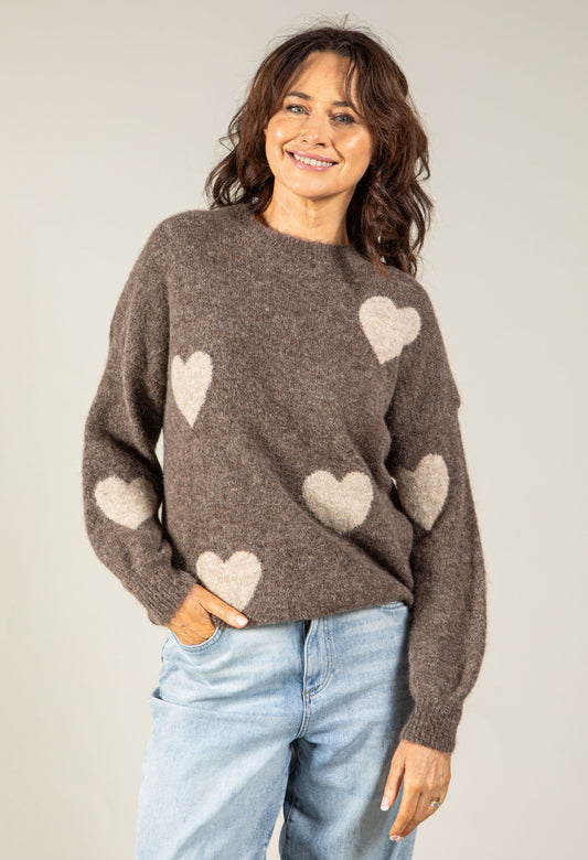 Love Heart Fluffy Knit Jumper in Taupe Mix