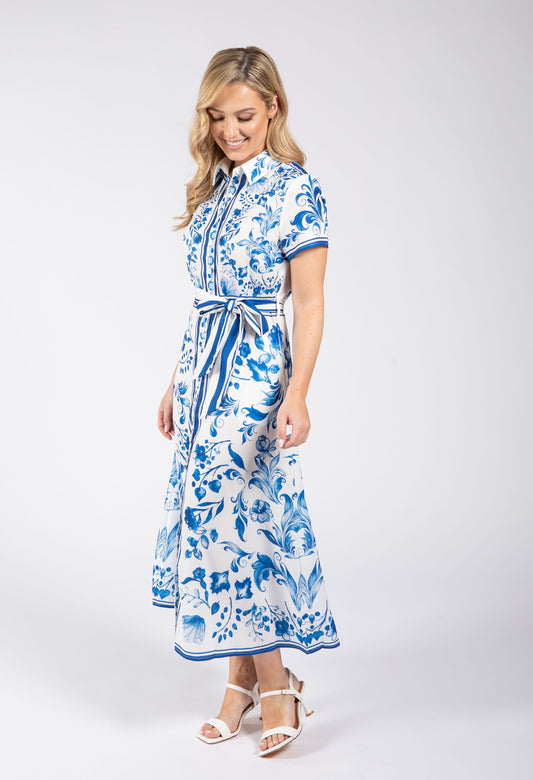 Antique Print Maxi Dress in Blue Mix