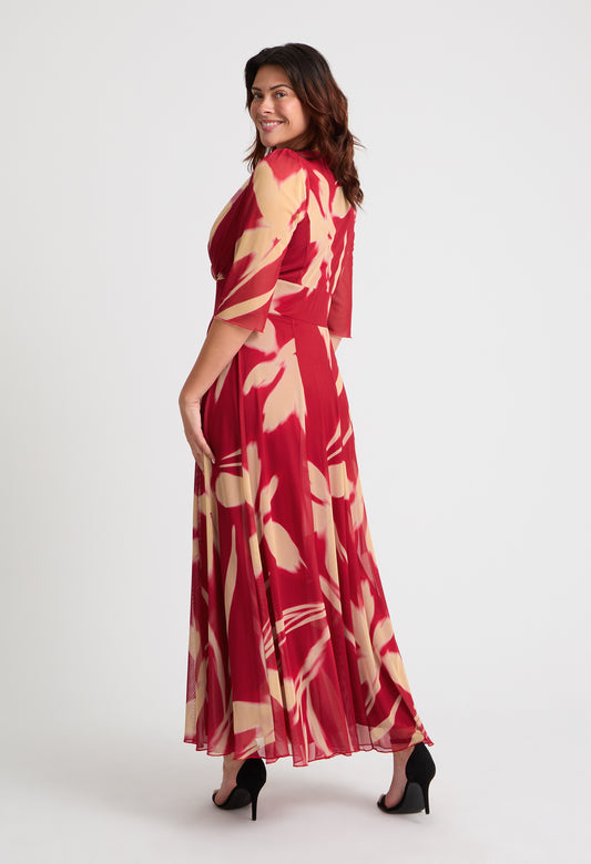 Isabelle Curve+ Float Sleeve Maxi Dress in Red/Cream