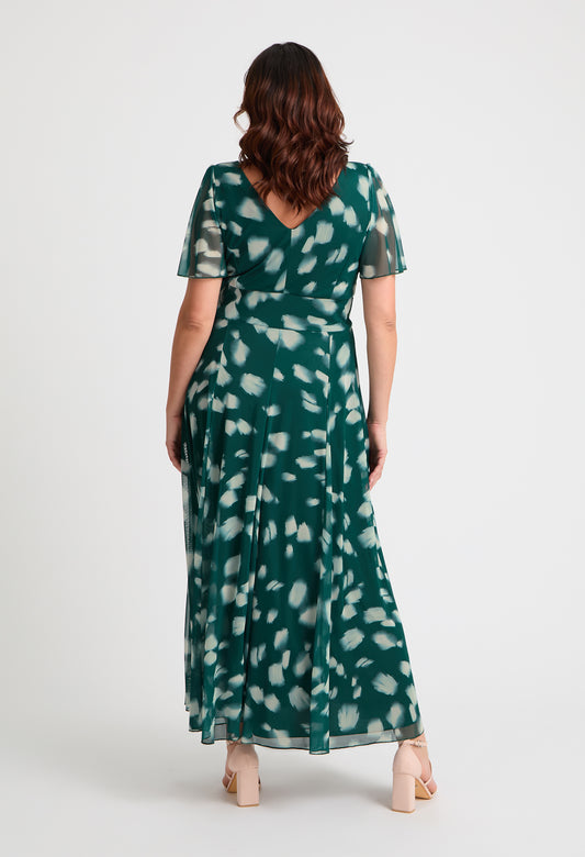 Isabelle Curve+ Float Sleeve Maxi Dress in Dark Green Cream