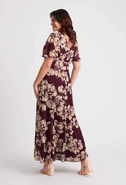 Isabelle Curve+ Float Sleeve Maxi Dress in Burgundy Cream