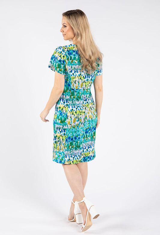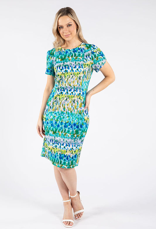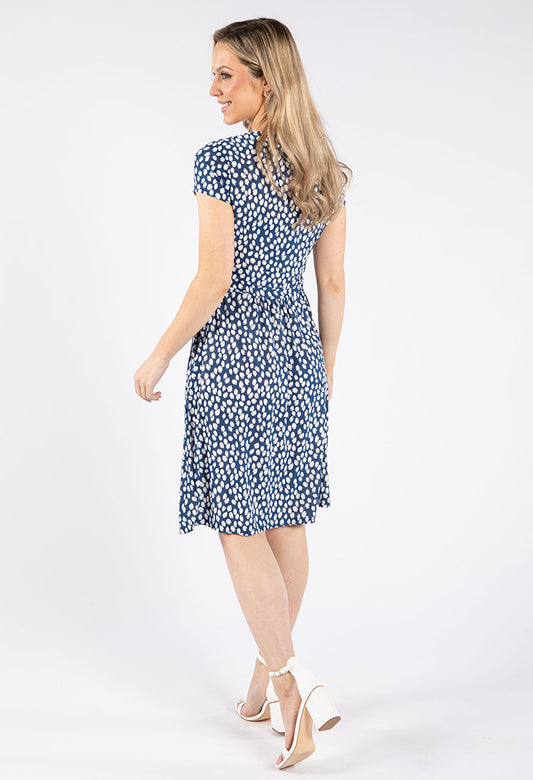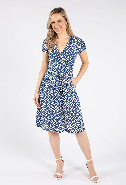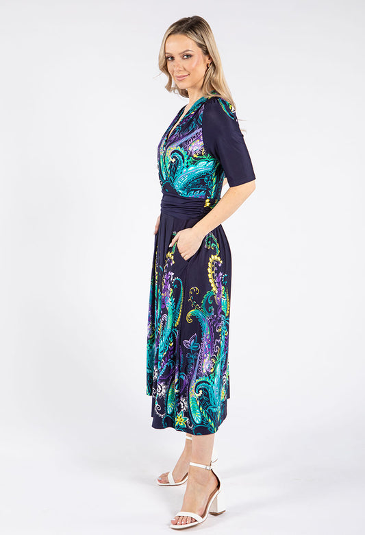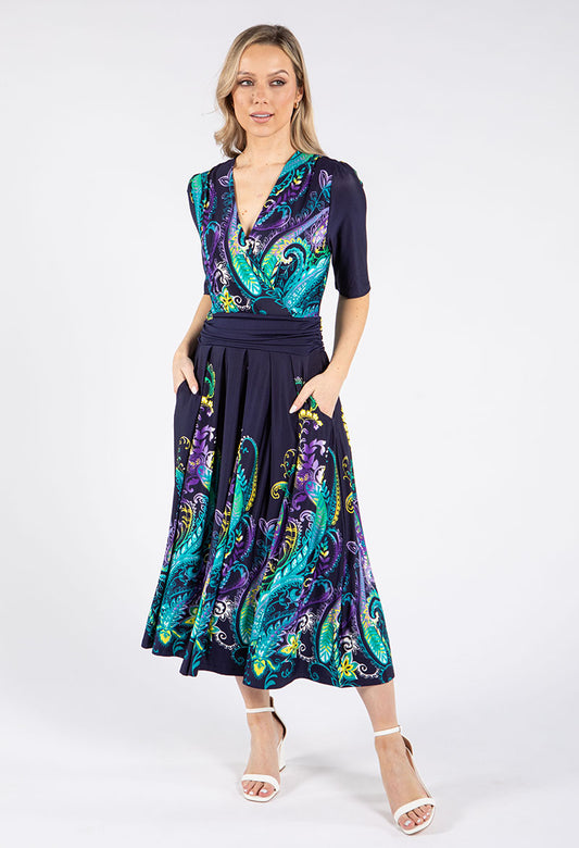 Liz Bolero Wrap Bodice Curve+ Midi Dress in Blue Multi