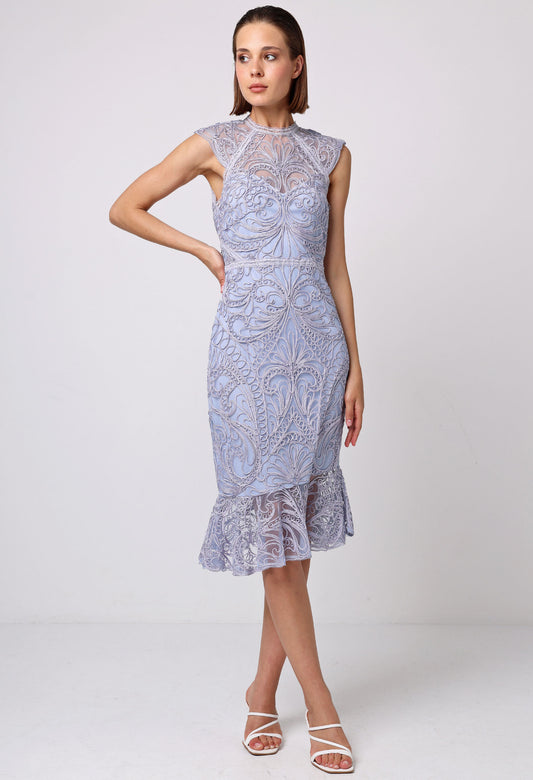 Victoria Angel Sleeve Mesh Midi Curve+ Dress