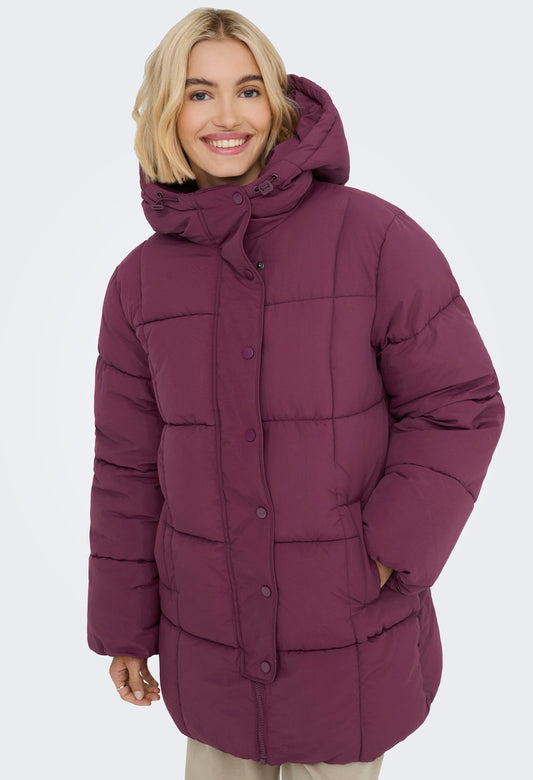 Longline Puffer Coat in Burgundy