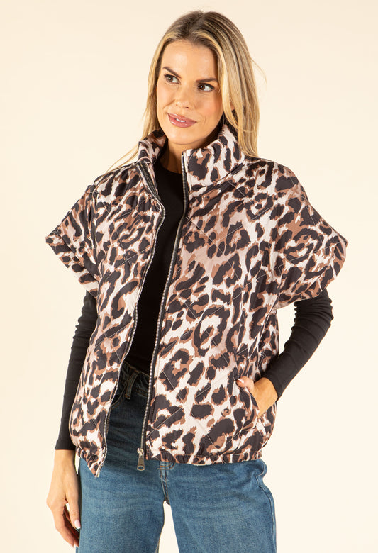 Leopard Print Quilted Gilet in Beige