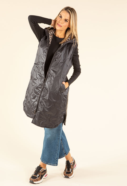 Longline Quilted Gilet in Black