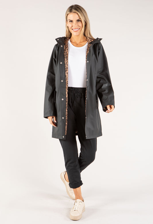 Longline Hooded Rain Jacket in Black