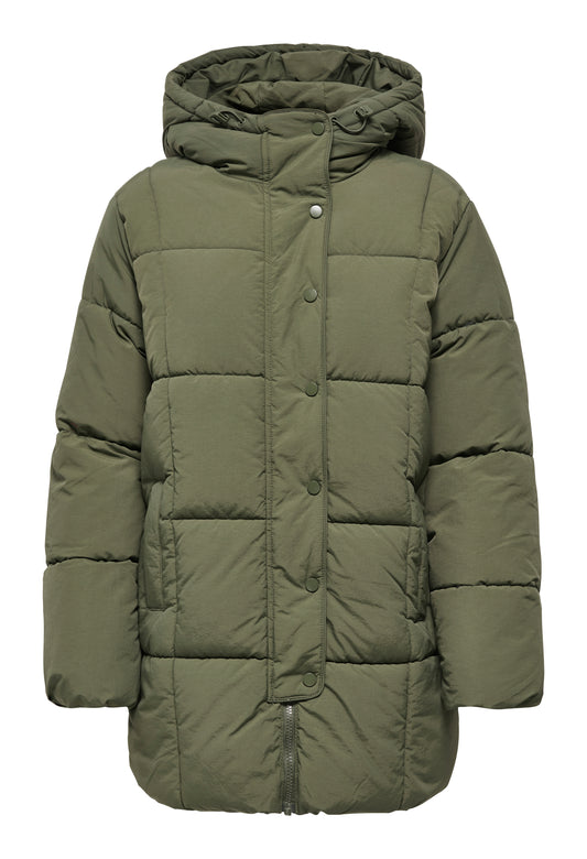 Longline Puffer Coat in Green