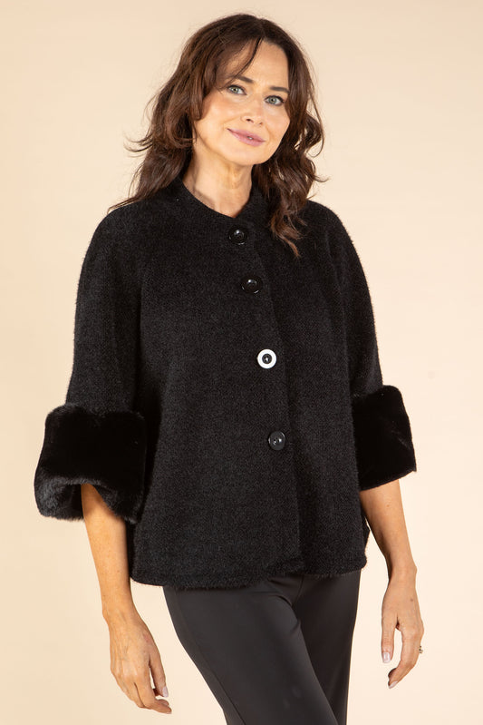 Faux Fur Trim Jacket in Black