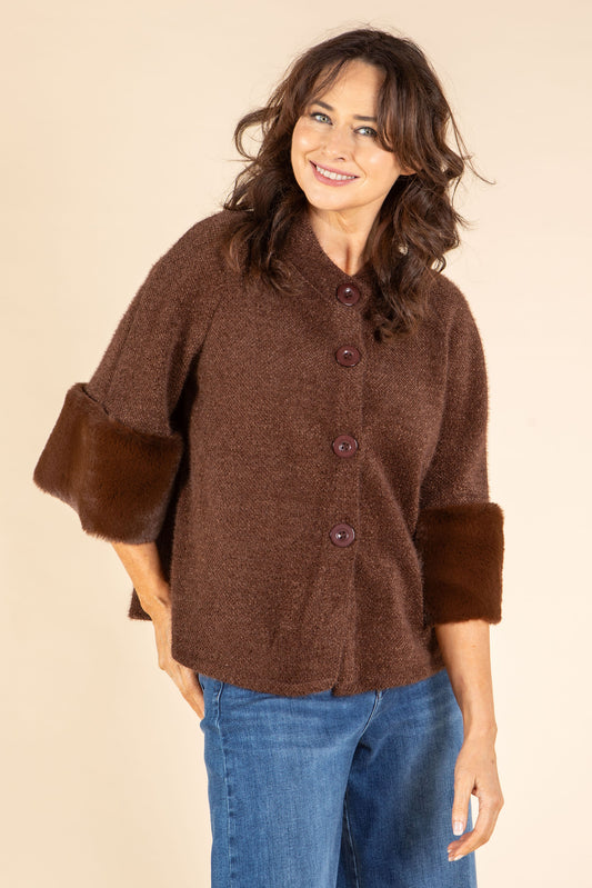 Faux Fur Trim Jacket in Brown