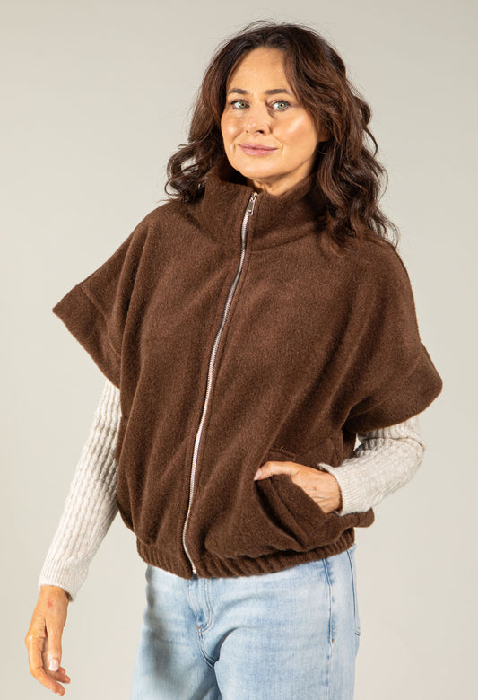 Soft Touch Zip-Up Gilet in Brown
