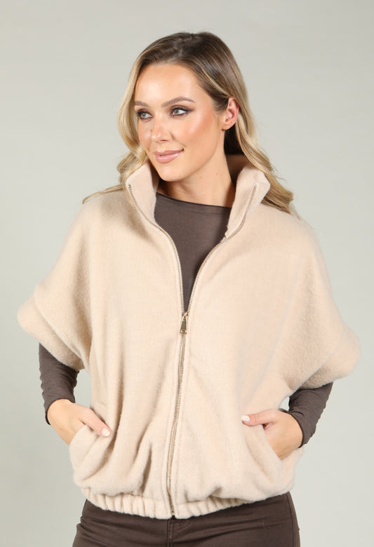 Soft Touch Zip-Up Gilet in Beige