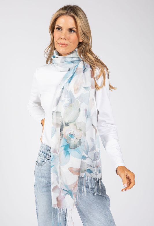 Soft Blossom Print Scarf in Blue