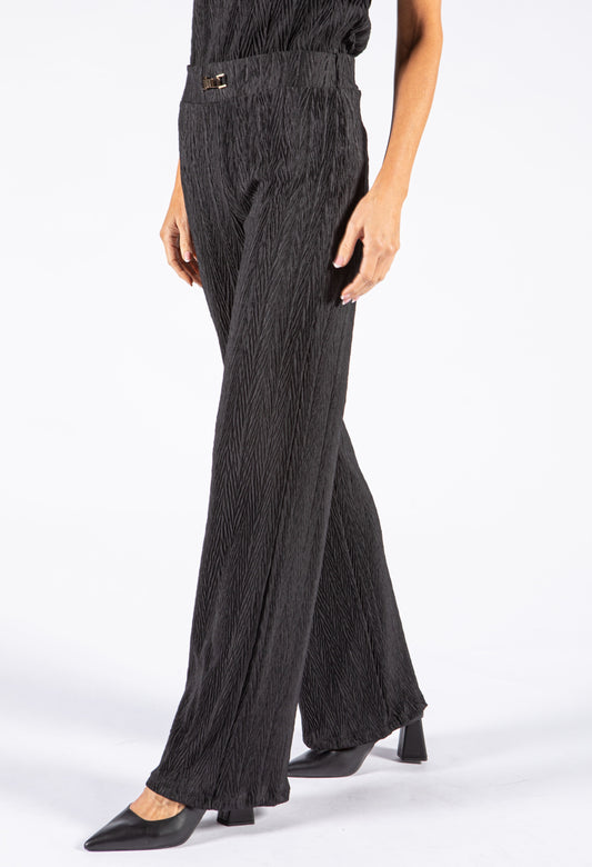 Gold Detail Crinkle Trousers in Black
