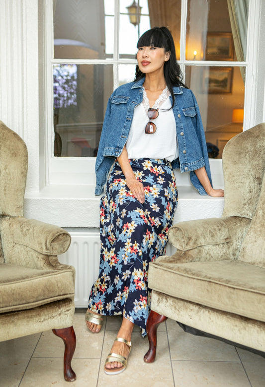 Soft Feel Fine Knit Pleated Skirt in Black & Teal in Multicolour