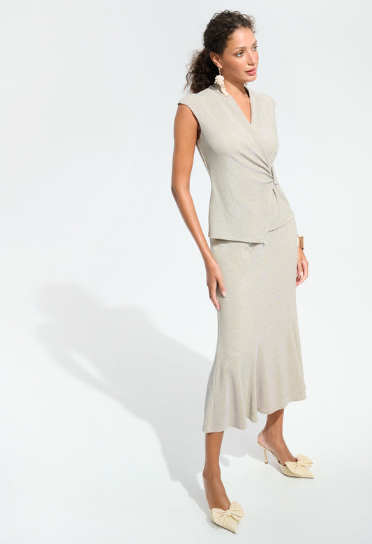 Ruched Midi Flared Skirt in Champagne