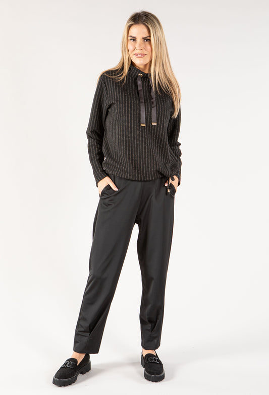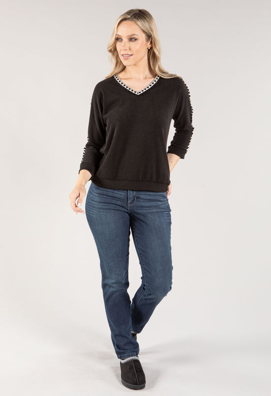 Long Sleeve Trim Top in Black