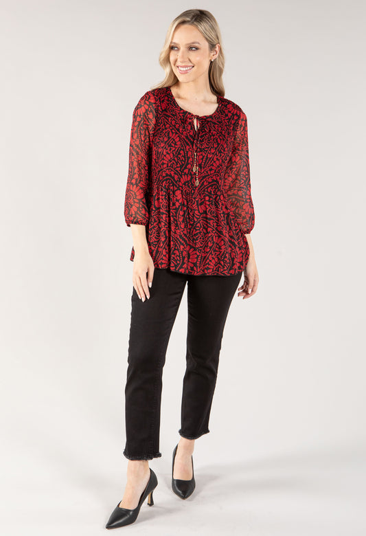 Poppy Print V Neck Top