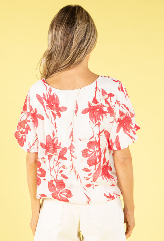 Floral Batwing Sleeve Knit Top in Navy Mix