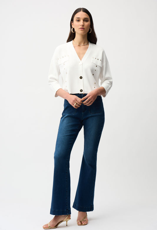 V-neck Chic Button Closure Top in Off White