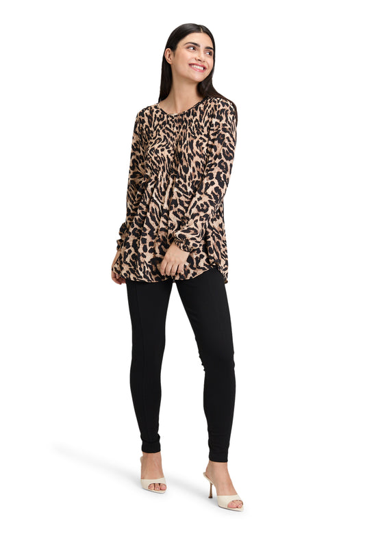 Plisse Pleat Slip-On Blouse in Black/Beige