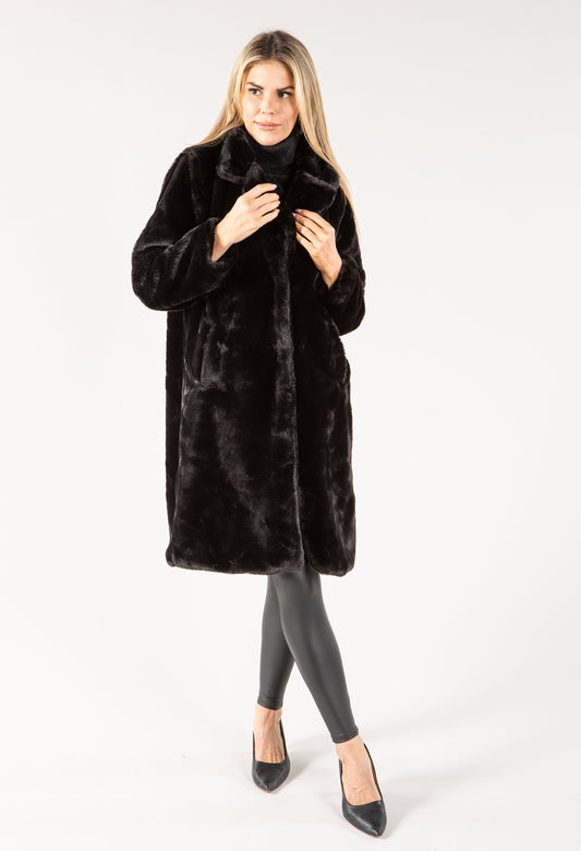 Longline Faux Fur Coat in Black
