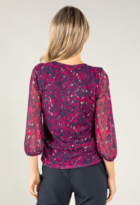 V Neckline Mesh Top in Magenta