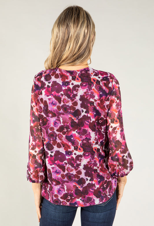 Poppy Print V Neck Top in Magenta