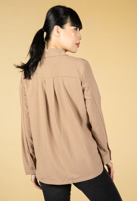 Long Sleeve Leaf Print Maxi Dress in Beige