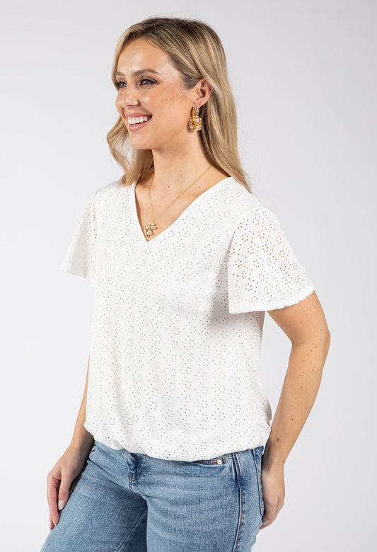Bubble Hem Top in White