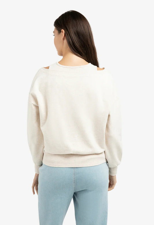 Sweatshirt with layered neckline detail in Cream
