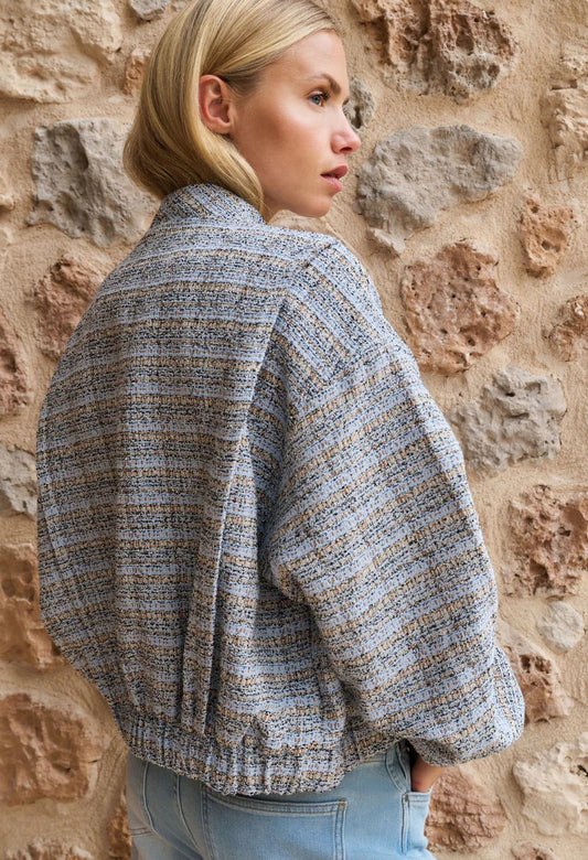 Short bouclé jacket with elasticated cuffs and hem in Blue