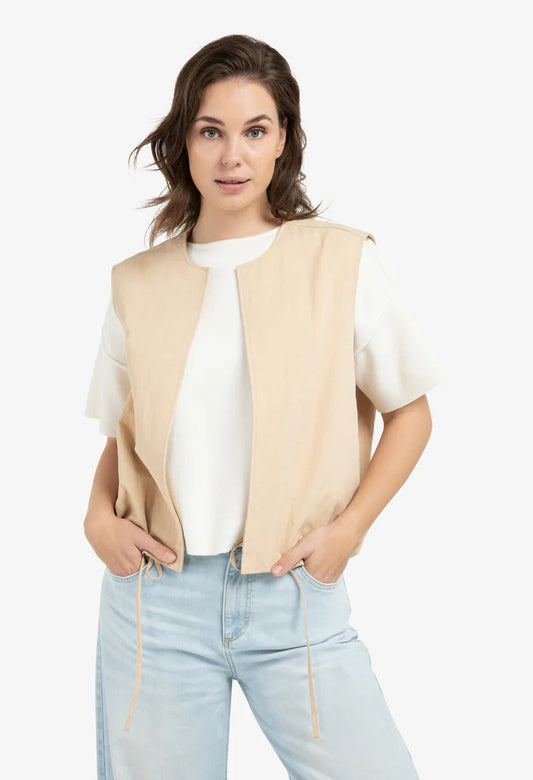 Sleeveless summer jacket with drawstrings in Beige