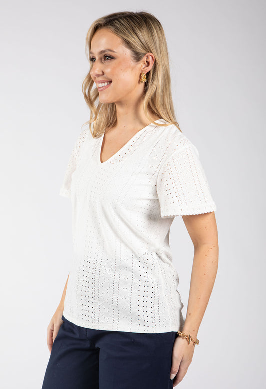 Cube Lace V-Neck Top in Cream